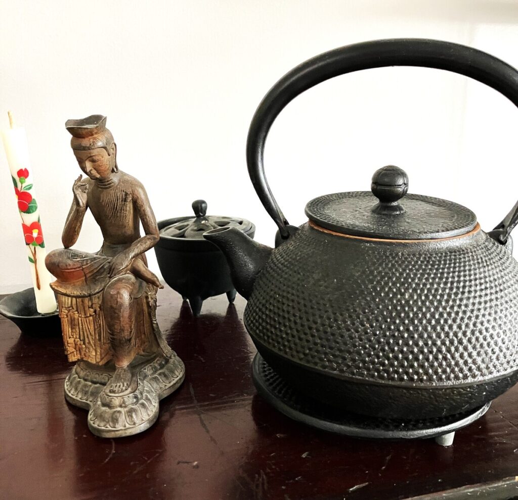 その時、同時に私の心を射抜いたのが香炉でした。南部鉄器ならではの重厚感と、計算された美しいフォルム。眺めているだけで背筋が伸びるような佇まいに惹かれ、一緒に連れて帰ることにしました。